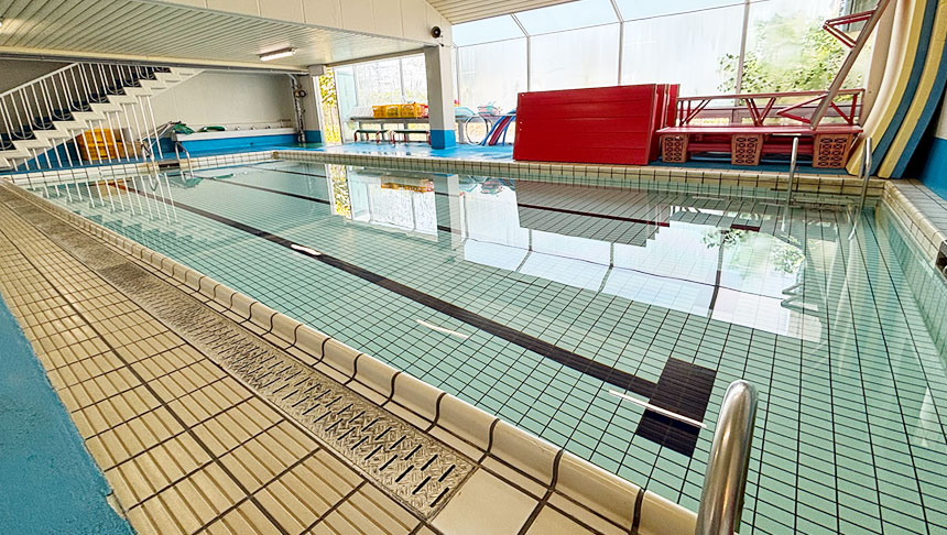 園内には年間通して利用できる室内温水プールが備わっています。