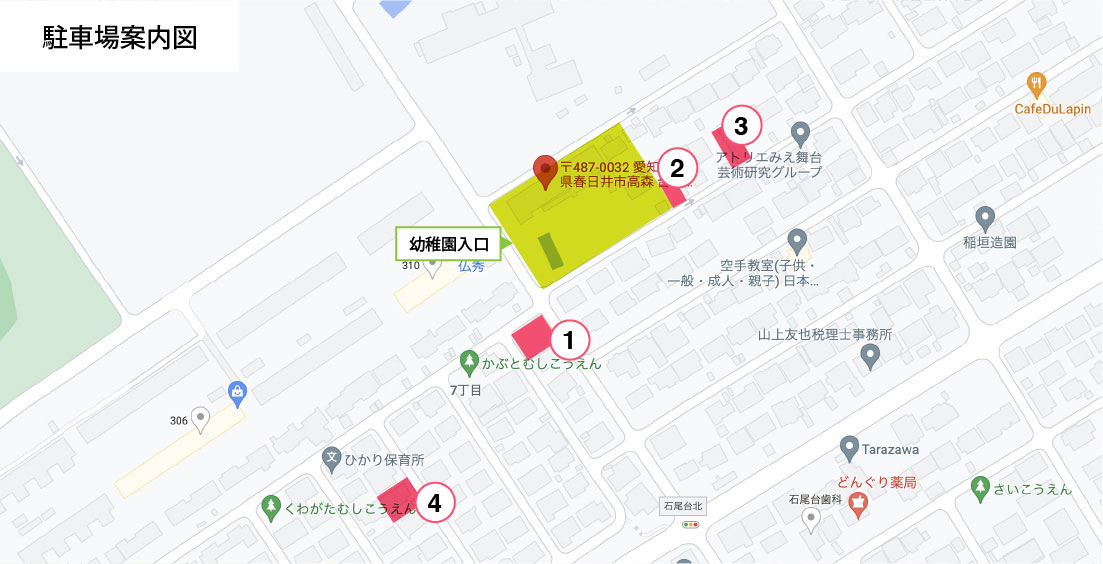 幼稚園にご来園の際は、当園の駐車場をご利用ください。