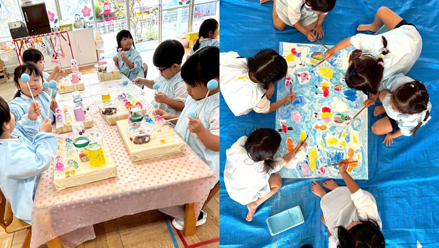 自分らしい表現で、子ども一人ひとりの個性を大切にし、思いっきり楽しく造形活動を行うことで、想像力を育てます。