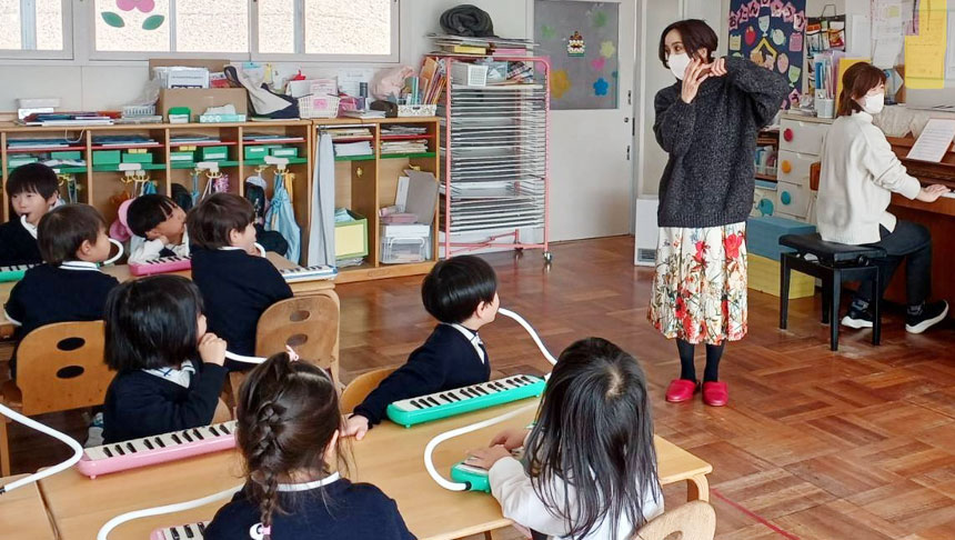 音楽やリズム感を鍛え、聴く力でいろいろな音を聞き分け、音楽の楽しさを育てます。