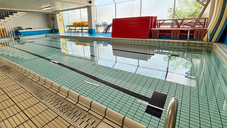 年間を通して利用できる、温水プールで水が得意な子ども、苦手な子どもも楽しめるよう工夫しています。