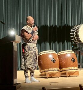 講師の先生は、地元春日井を拠点とする『転輪太鼓』の國分入道光雲先生です。