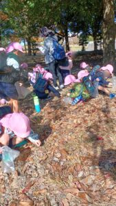 みんな寒さにも負けず、どんぐり拾いや水の塔で元気いっぱいで遊びました‼