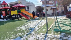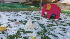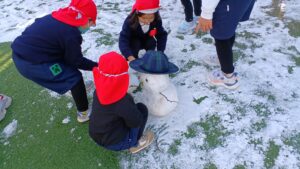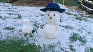 今朝は日陰に残った雪で子供たちが雪だるまを作って大はしゃぎ😆🙌🙌🙌