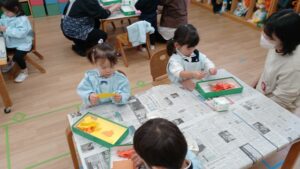 今日はひよこ組の絵画造形指導がありました🐥