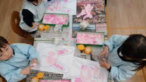 それぞれ好きな動物の顔を色画用紙をちぎって張っていきました🐰🐱🐶🐻