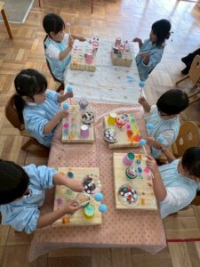 絵画造形指導の片岡先生と一緒に「年少組さんが楽器をつくりました🎶」