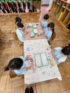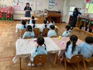 絵画造形指導の片岡先生と一緒に「年少組さんが楽器をつくりました🎶」