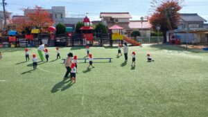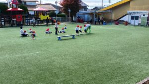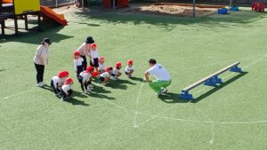 今日は年少さん、年長さんとも園庭で体操指導がありました‼