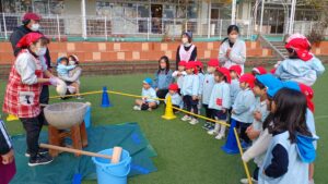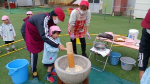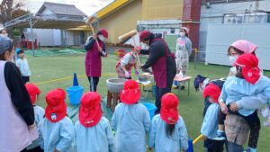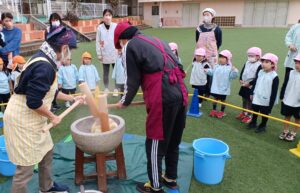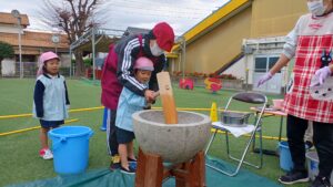 今日は園庭でみんなでお餅つきをしました💪💪