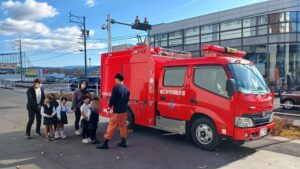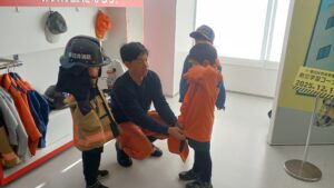 現役消防士さんに防災のお話を聞いたり、消防服を着せてもらったり、訓練のことを教えてもらったりと盛りだくさんの内容でした。