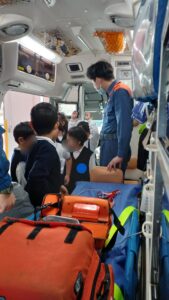 実際の消防車や救急車に乗せてもらい大興奮の子供たち。
