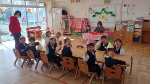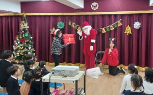 クリスマスの歌を歌ったり、アニメを観たり、楽しく過ごしていると・・・⁉️